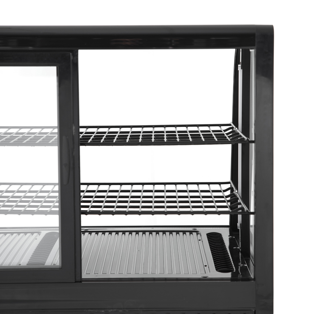 RT-100L Foodatlas в черном цвете отличается стильным дизайном и функциональностью. Две полки витрины можно устанавливать на разную высоту, что удобно при работе с разными блюдами и посудой. Объем холодильной камеры составляет до 100 литров. Прямоугольная витрина может быть установлена на столе или любой горизонтальной поверхности.