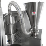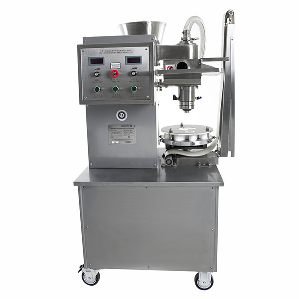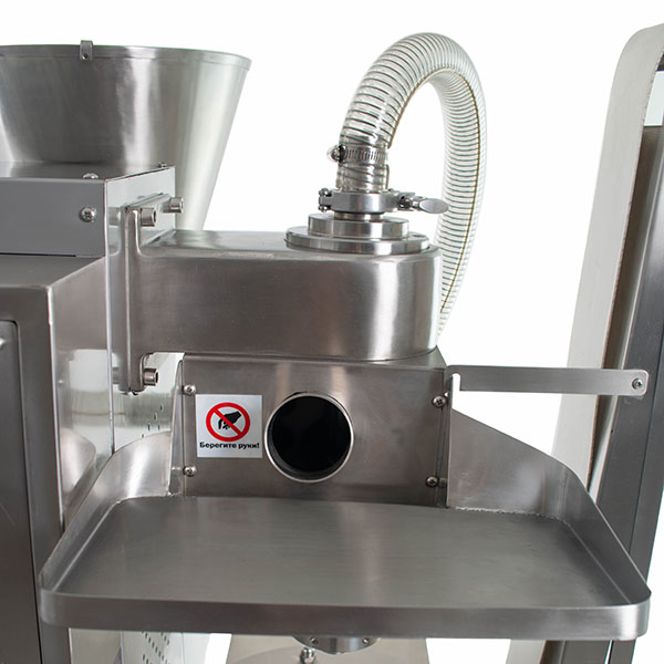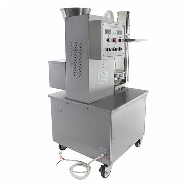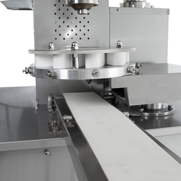 - Механический контроль подачи начинки и теста дает возможность регулировать объем используемого сырья в производстве хинкали.