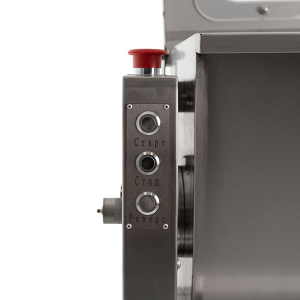 Фаршемешалка имеет удобную конструкцию: при опрокидывании месильной емкости (дежи) оператор повторно включает вращение рабочего органа, и выгрузка готового фарша происходит автоматически. Также изделие имеет быстросъемный рабочий орган, что позволяет использовать различные по форме и назначению месильные лопасти для разных продуктов, а также удобно производить санитарную обработку по окончании работы.