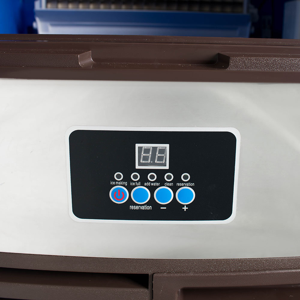 К преимуществам льдогенератора следует отнести автоматическую проверку наличия уровня воды в аппарате, «умное» электронное управление, индикаторы готовности льда, самоочищение.