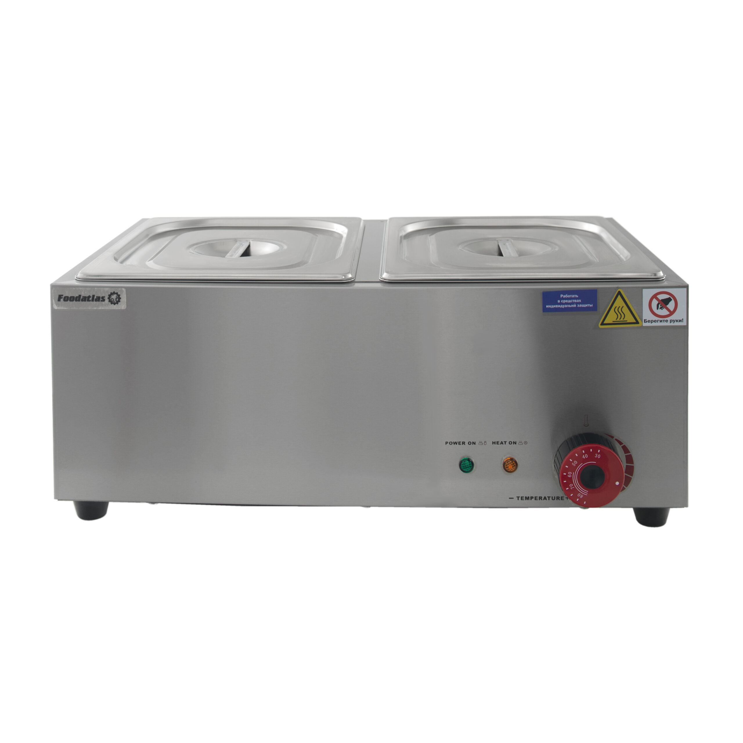 Предлагаемый вам мармит Foodatlas EH-2 имеет 2 бункера для первых и вторых блюд, соусов и прочих пищевых ингредиентов. По современным требованиям для изготовления мармитов применяется только коррозионностойкий металл. В данном случае речь идёт о нержавейке стали марки 460. Толщина металла составляет 0,8 мм, что обеспечивает исключительную механическую прочность и долговечность изделия.