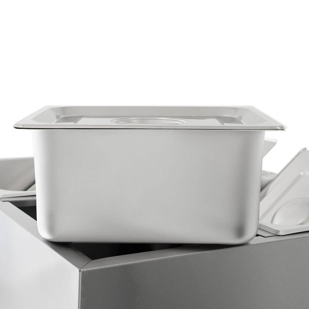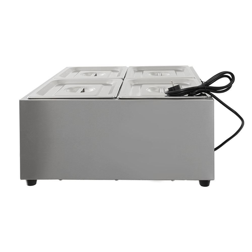 Предлагаемый вам мармит Foodatlas EH-4 имеет 4 бункера для первых и вторых блюд, соусов и прочих пищевых ингредиентов. По современным требованиям для изготовления мармитов применяется только коррозионностойкий металл. В данном случае речь идёт о нержавейке стали марки 460. Толщина металла составляет 0,8