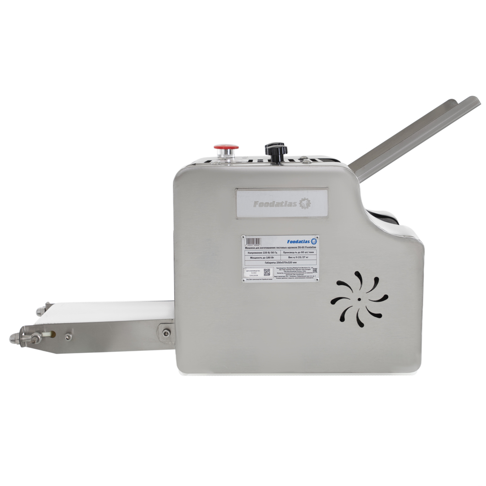 Машина для изготовления тестовых кружков DS-60 Foodatlas станет отличным решением для любого пельменного цеха. Аппарат раскатывает тесто и нарезает его на равные части (кружочки), которые используются в качестве заготовок для пельменей и вареников ручной лепки. Оборудование позволяет облегчить человеческий труд, ускорить работу на кухне и повысить производительность предприятия.