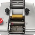 Основу конструкции аппарата составляет ряд вертикальных валков, через которые последовательно проходит тесто. В верхней части корпуса находятся регулировочные винты для изменения расстояния между валками. С их помощью можно регулировать толщину заготовок.