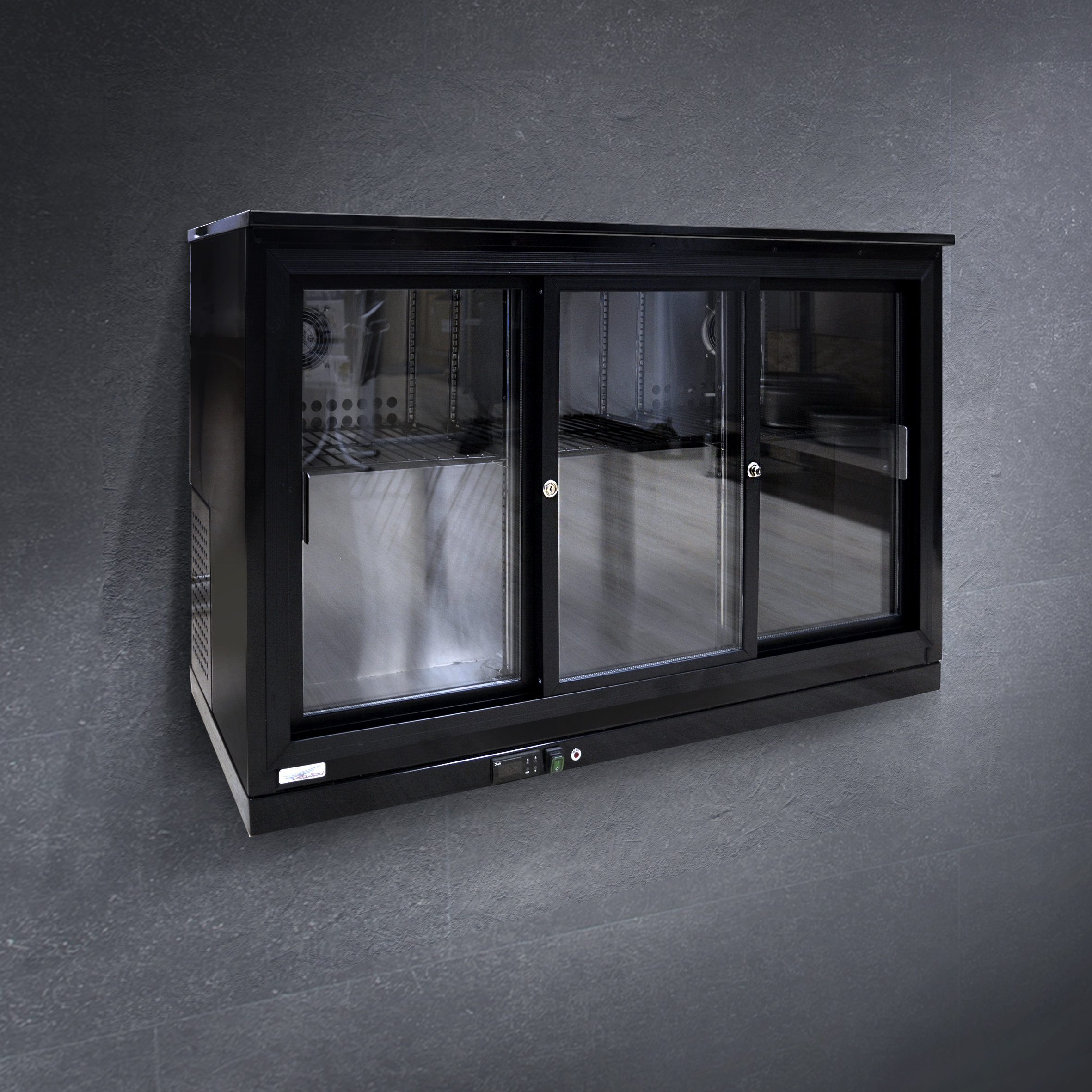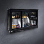 Выкладка напитков для демонстрации осуществляется на дно и промежуточные полки витрины. Оформление стеклопакетом (толщина 16 мм) позволяет рассматривать гостям предложенный товар. С помощью дверей купе можно легко наполнять витрину и доставать продукцию.