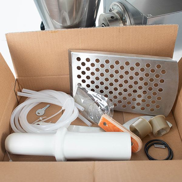 • Корпус тестоузла выполнен с дополнительным водяным охлаждением. Данный узел может сильно нагреваться за счет трения крутого теста даже при формировании средней толщины «тестовой трубки». Необходимо подключение к водоснабжению.