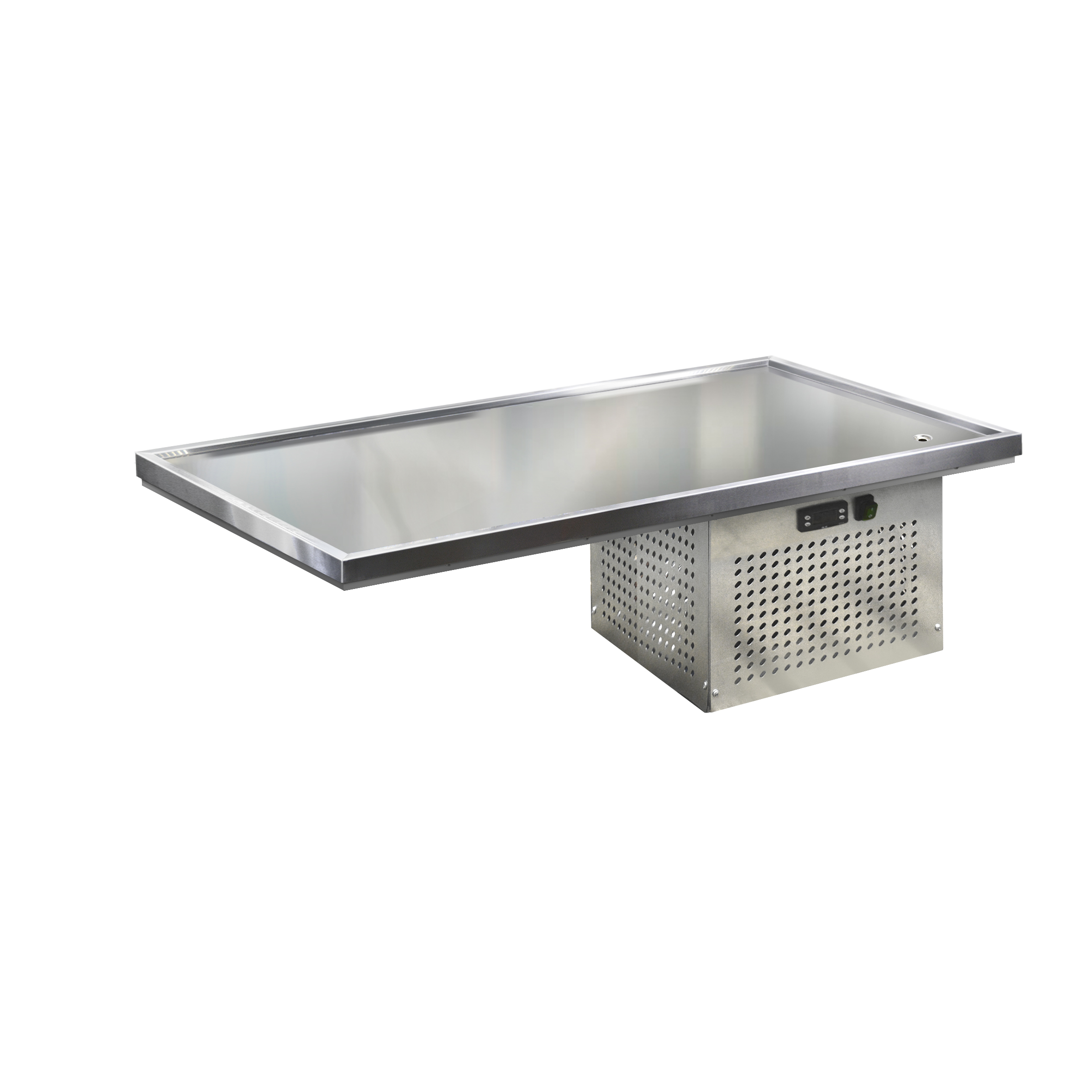 Встраиваемая холодильная поверхность с бортом серии «STATIC table» предназначена для кратковременной демонстрации готовых охлаждённых блюд, салатов, десертов, фруктов (также, может использоваться для разделки полуфабрикатов мяса и рыбы).