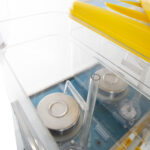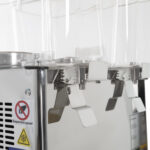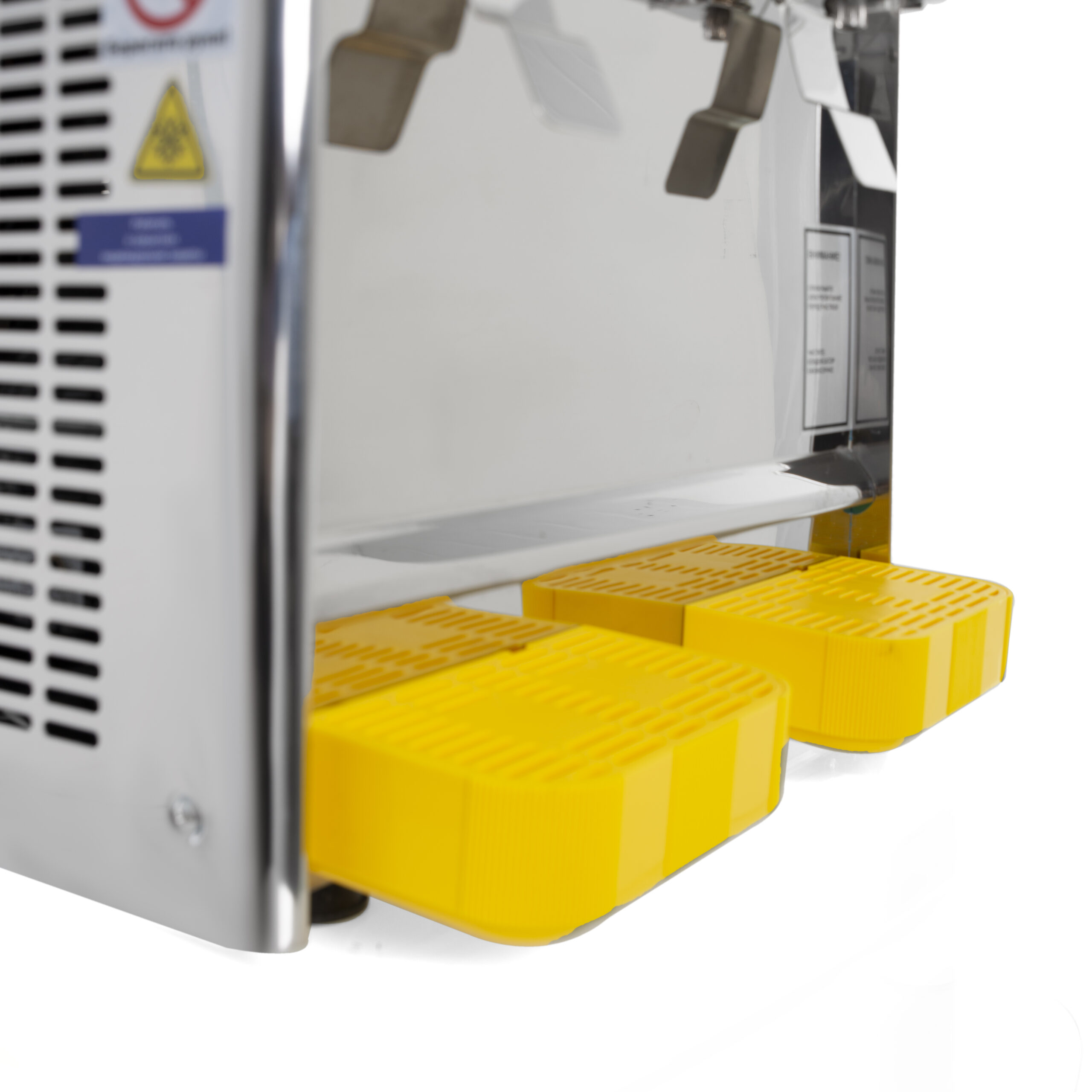 Предназначенные для напитков стеклянные ёмкости закрываются пластмассовыми крышками. Они, как и фигурные краники, привлекают дополнительное внимание к сокоохладителю.