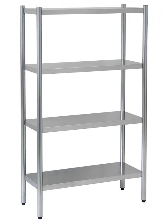 Стеллаж для кухни (4 полки — нерж. сталь, стойки — оцинкованная сталь (уголок)..Вес 30,6кг, Атеси, Москва.Размер: 950х600х1600мм.