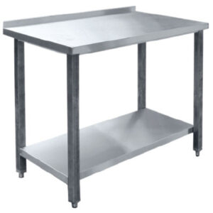 Стол производственный без борта (1200х800х870 мм, столешница и сплошная полка — AISI430, каркас — круг.труба AISI201, без борта, углы столешницы заварены.