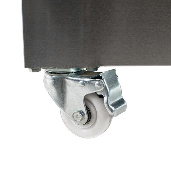 Модель имеет ножки и колеса, благодаря чему устройство легко переместить в другое помещение. Верхний корпус тестоделителя изготовлен из экологически чистого пластика, а нижняя часть из высокопрочной нержавеющей стали.