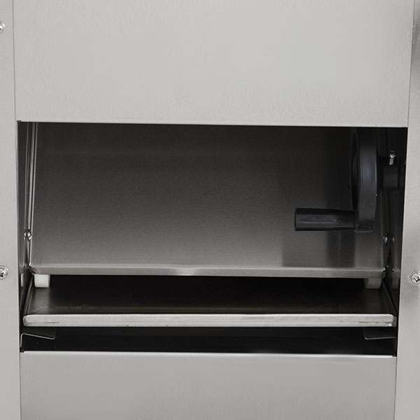 - Эксцентриковая система регулировки зазора между валами. Зазор толщины раскатываемого теста координируется в ручном режиме с помощью регулятора валка и варьируется от 1 до 25 мм.