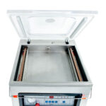 Камерный тип оборудования. Оборудование может иметь одну или две вакуумных камеры. Для двухкамерных упаковщиков так же есть подразделение на расположение камеры (одна на основном корпусе оборудования, вторая в корпусе подвижной крышки). Данная серия вакууматора идет без функции наполнения инертным газом (только для серии DZQ, для формирования и наполнения в виде “подушечки”).